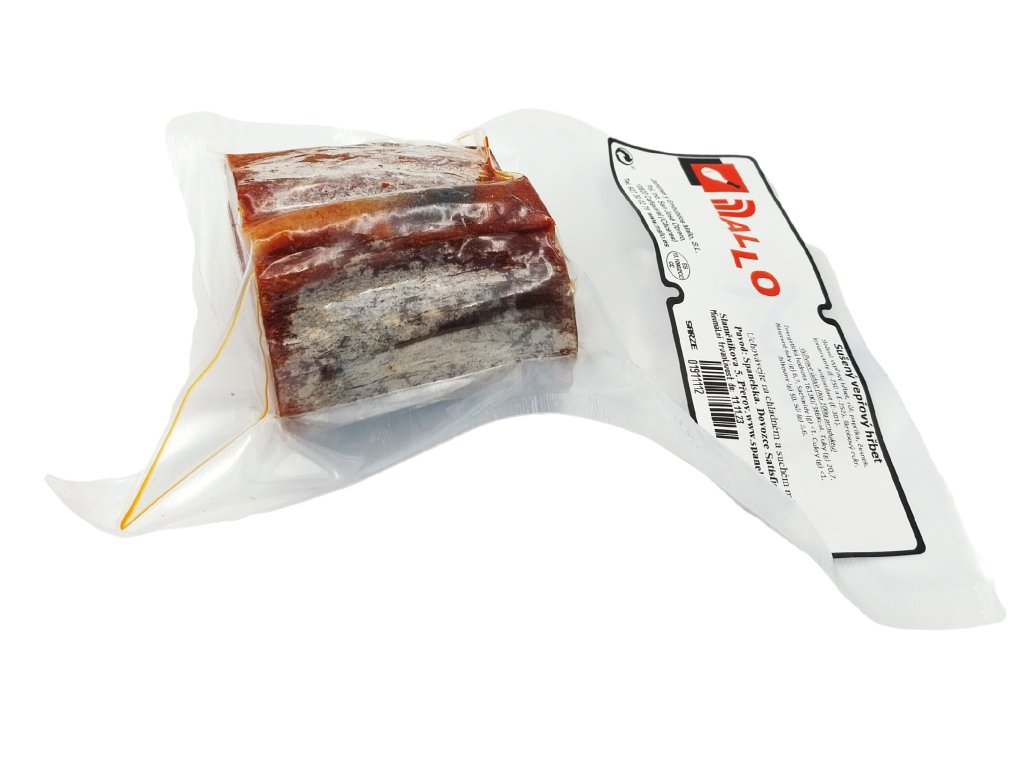 Zloženie: bravčová panenka, soľ, paprika, cesnak, konzervačné látky E252 a E250, škrobový cukor, antioxidant E-301.