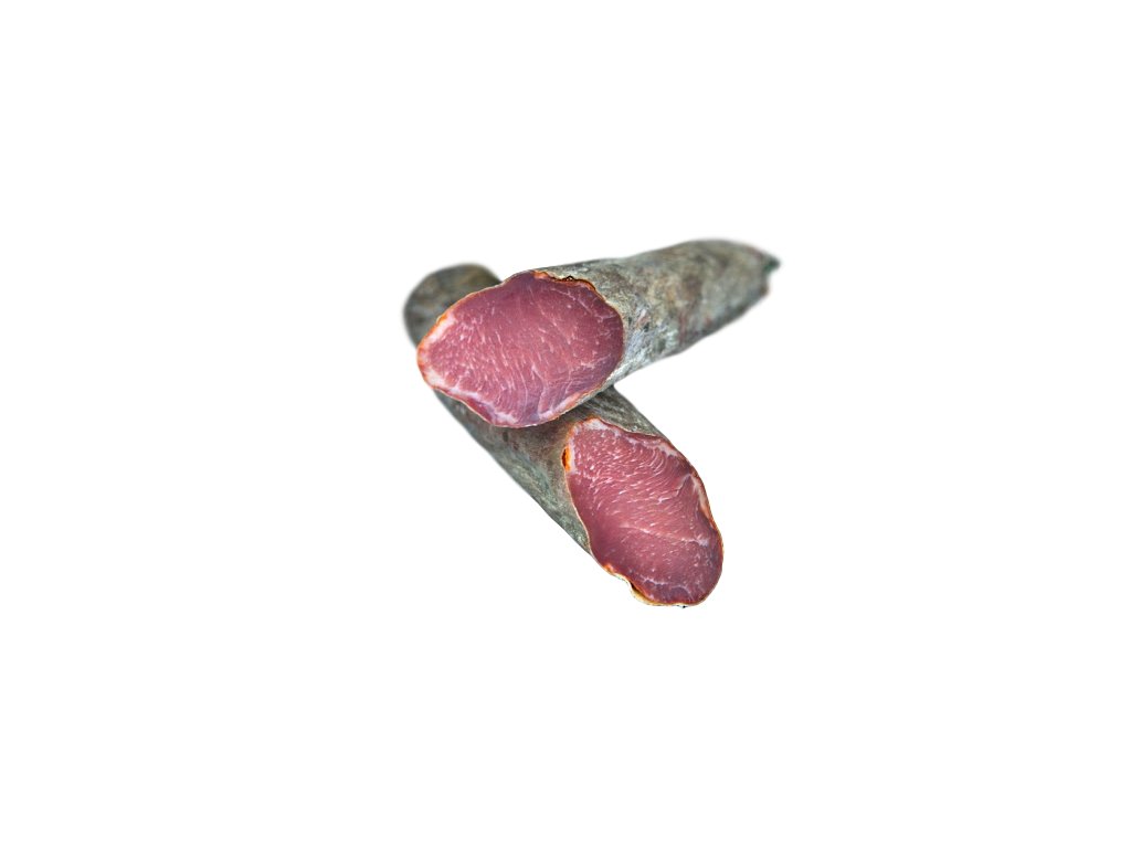 Složení: Vepřový hřbet, sůl, cukr, laktoza , sušená paprika, koření, E452 – Polyfosforečnany, antioxidant E-301 a konzervanty E250 a E252. Minimální doba zrání 2 měsíce.