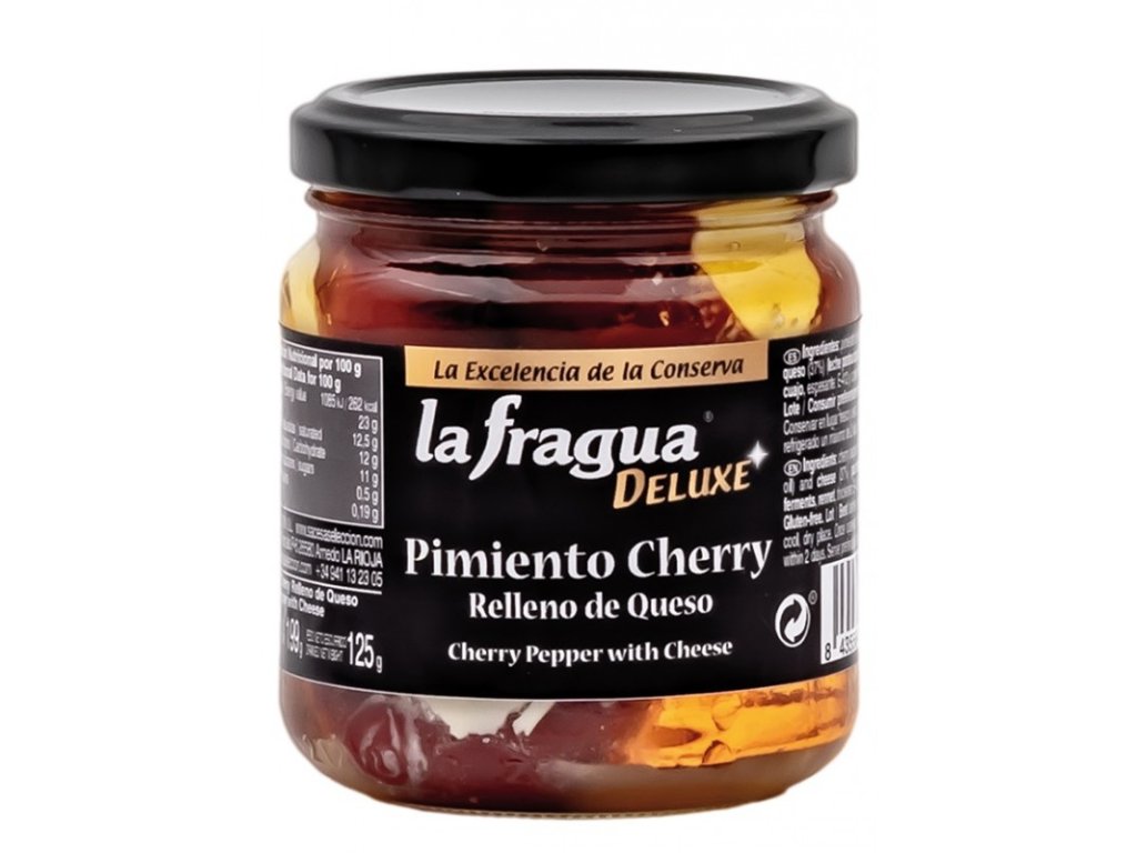 Zloženie: čerešňová paprika, olej (slnečnicový a olivový) a syr (37 %) (pasterizované mlieko, soľ, kyselina mliečna, syridlo, zahusťovadlo: E-412 a konzervačná látka: E202).
