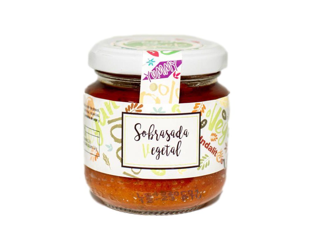 Sobrasada vegana 130G Zloženie: zemiakové pyré, slnečnicový olej, paprika, soľ, cukor, dextróza, korenie, antioxidant E-301, víno, sójový proteín a cesnak.