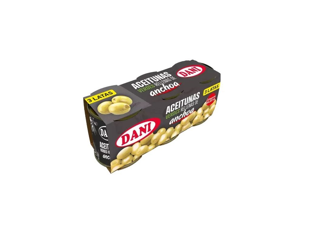 Zelené olivy Manzanilla, voda, sardelová pasta 6 % (ančovička, stabilizátor E-401), soľ, zvýrazňovač chuti E-621, regulátor kyslosti: E-330 a E-270, antioxidant E-300.